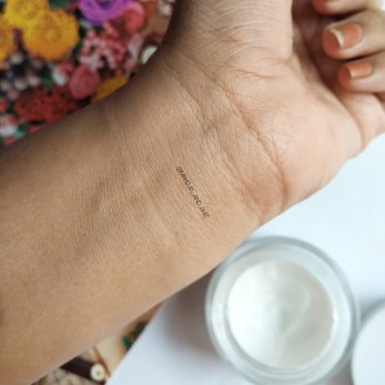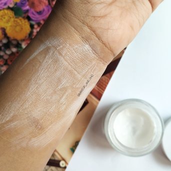 Being a dry skin type myself , this really worked well for my skin. Being thick , it provides 8-10 hour moisturization. At first when you put it on your skin and massage it into it spreads as white cast( see the picture down) . Therefore , i needed to pat it in at start and then massage it into the skin. Also, a very small amount is needed.