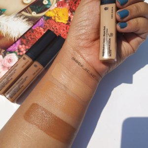 Well, to begin with, the texture of this concealer is very smooth and creamy. It is extremely light weighted . It is neither too thick nor too thin (like the LA pro girl concealers). Hence, comfortable to wear. It blends without any pain. You can easily blend with your fingers too. It doesn’t dry off too quickly, therefore it’s a good thing. It gives a semi- matte finish which needs to be set with a loose powder or any pressed powder. It doesn’t feel dry or cakey at all. It’s really good , specially to dry skin beauties.