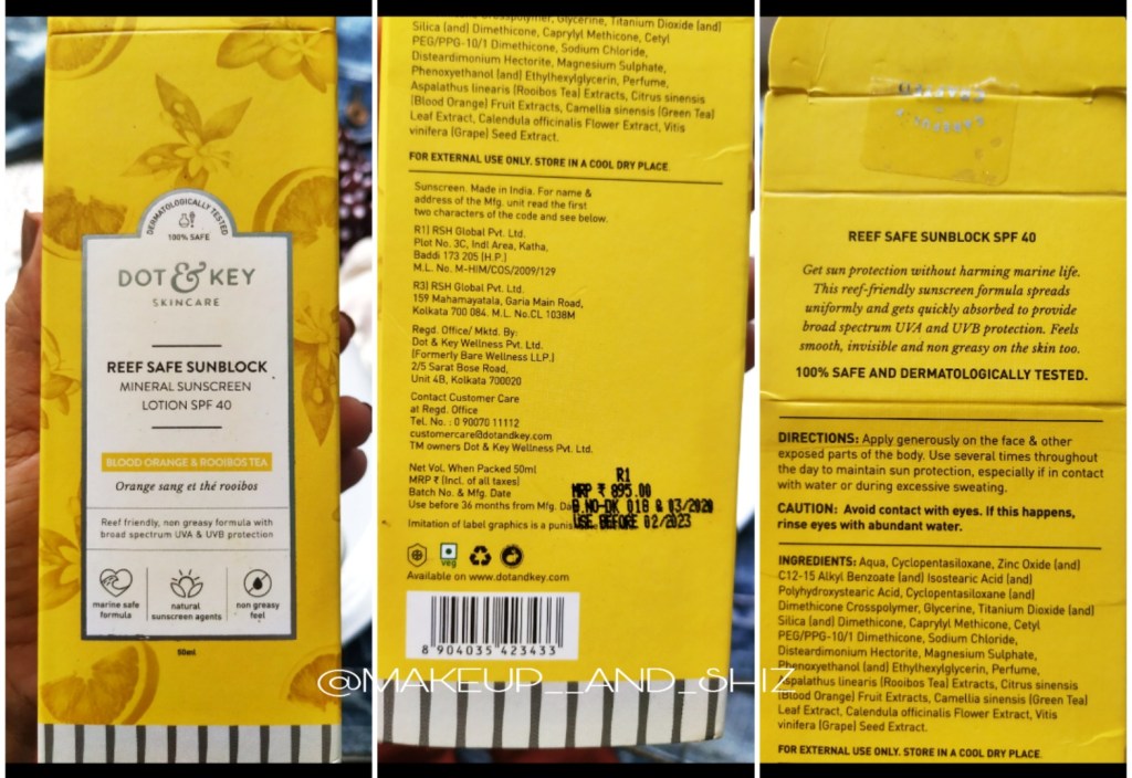 As usual, Dot and Key nails it when it comes to the packaging . It comes in an outer cardboard box cover . The sunscreen bottle comes in a pump packaging which is good . Though the pump is bit tight which makes it a bit difficult to use , or else its good to go.